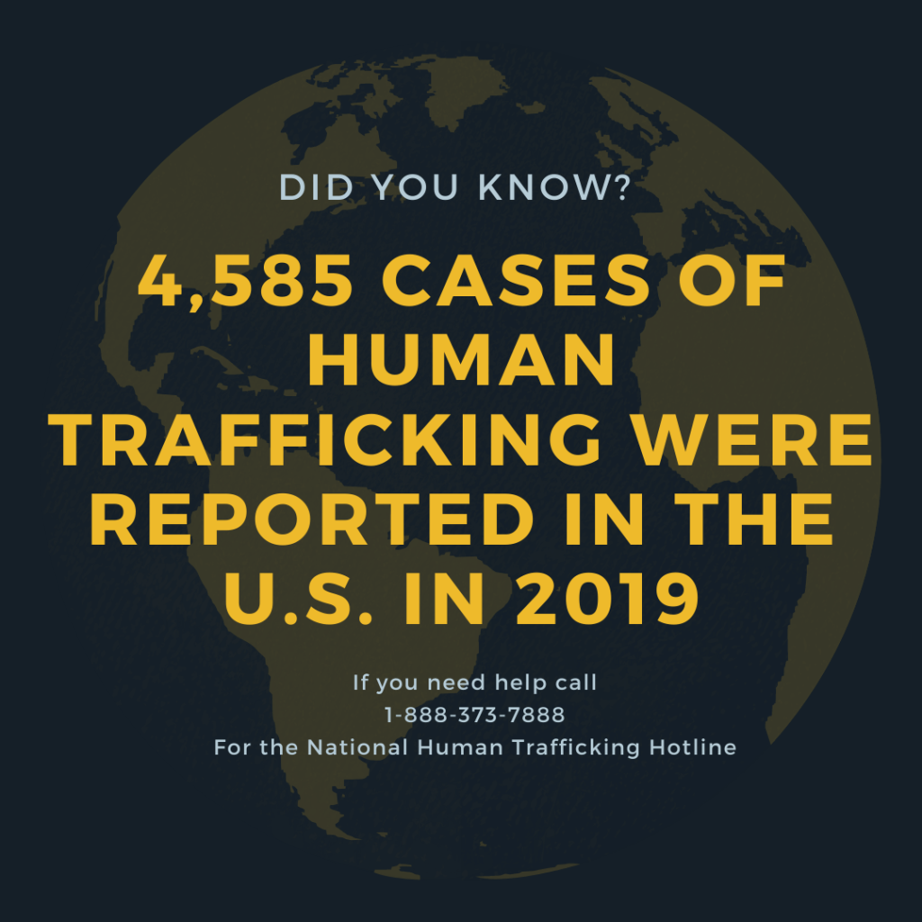 According to the National Human Trafficking Hotline, 4,585 human trafficking cases were reported in the United States in 2019.